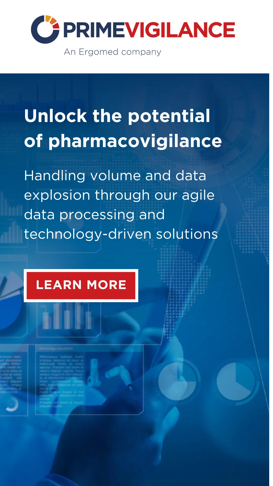 PrimeVigilance, an Ergomed company, has grown to become the leading Pharmacovigilance specialist company, delivering global solutions for clinical safety and post-marketing pharmacovigilance and medical information from our operational hubs based in Europe, the USA, and Japan. Our extensive experience enables us to offer a comprehensive, top-quality, cost-effective, and innovative safety solution. Our flexible approach, tailor-made to work with clients, allows us to deliver the services that meet your clinical and post-marketing needs. PrimeVigilance provides pharmacovigilance solutions to over 200 clients who distribute their products worldwide. PrimeVigilance manages a global Pharmacovigilance system with a choice of leading drug safety databases, stretching to more than 100 countries.