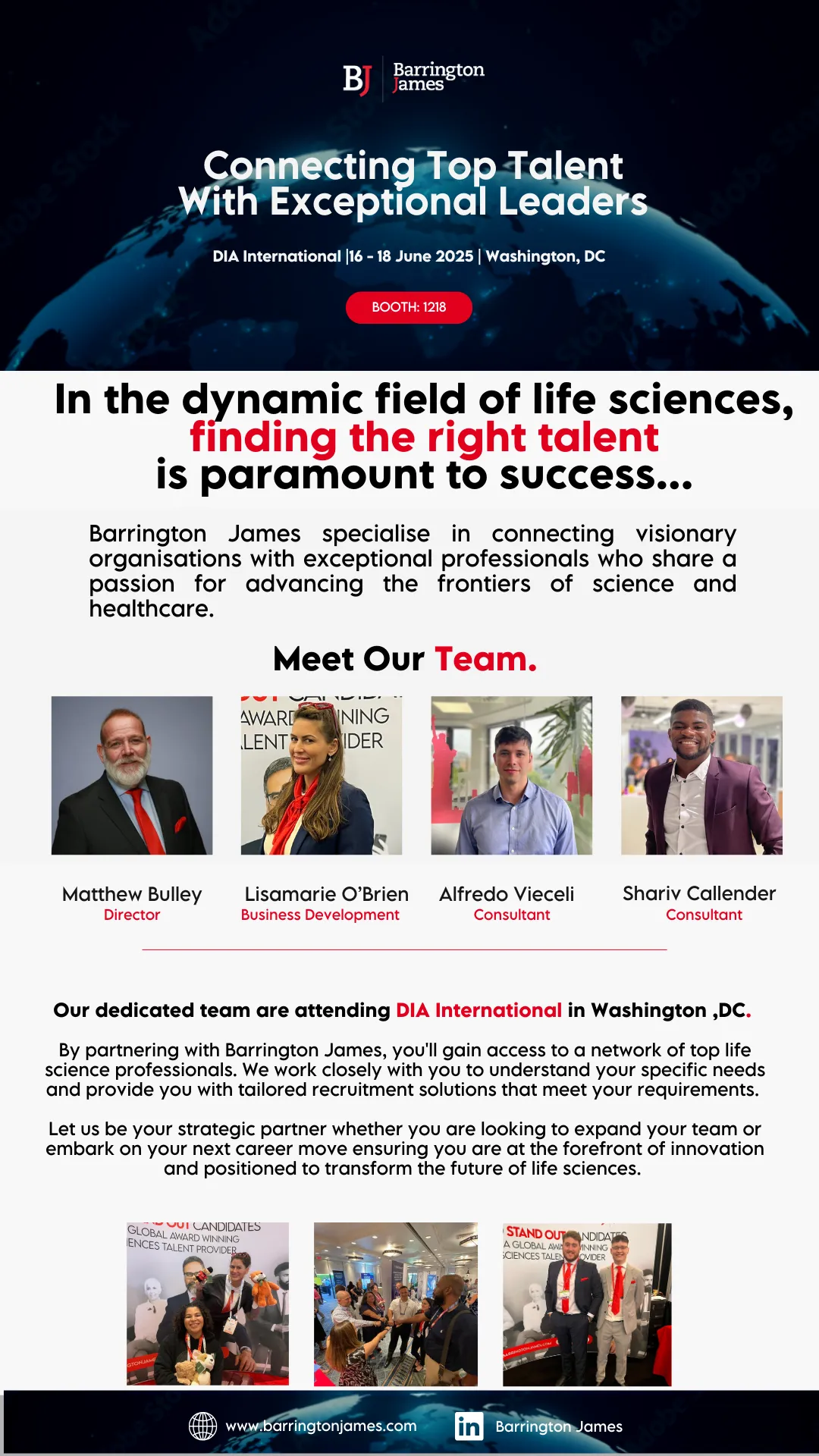 Barrington James are an industry leading, global recruitment business that exclusively serves the Pharmaceutical, Biotechnology and Medical Device sectors. With offices all over the world and hundreds of specialists dedicated to sourcing exceptional talent, we have the capacity and capabilities to deliver world-class recruitment solutions to Life Science companies of all sizes.